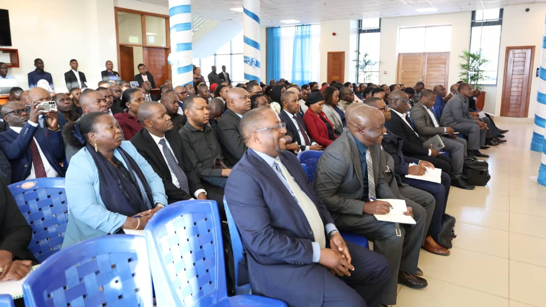 Naibu Katibu Mkuu, UTUMISHI, Xavier Daudi (wa kwanza kushoto mbele) akifuatilia mada iliyokuwa ikiwasilishwa na Meneja w...