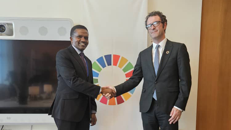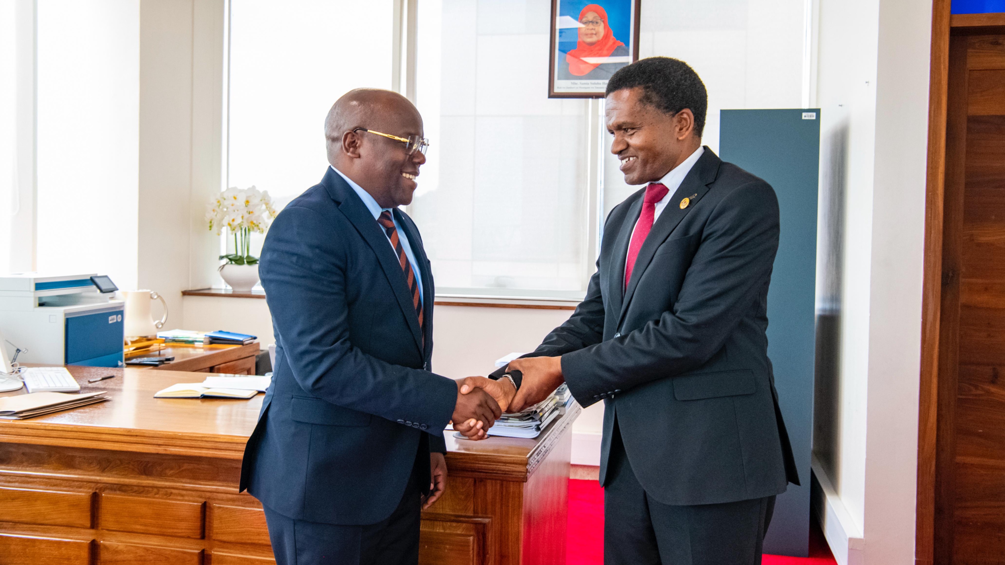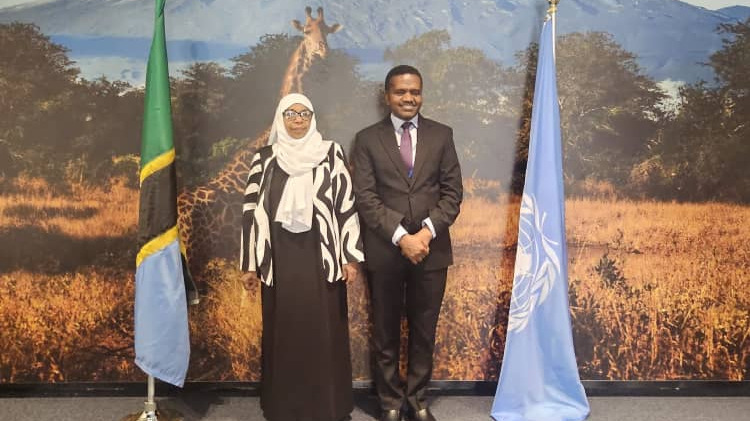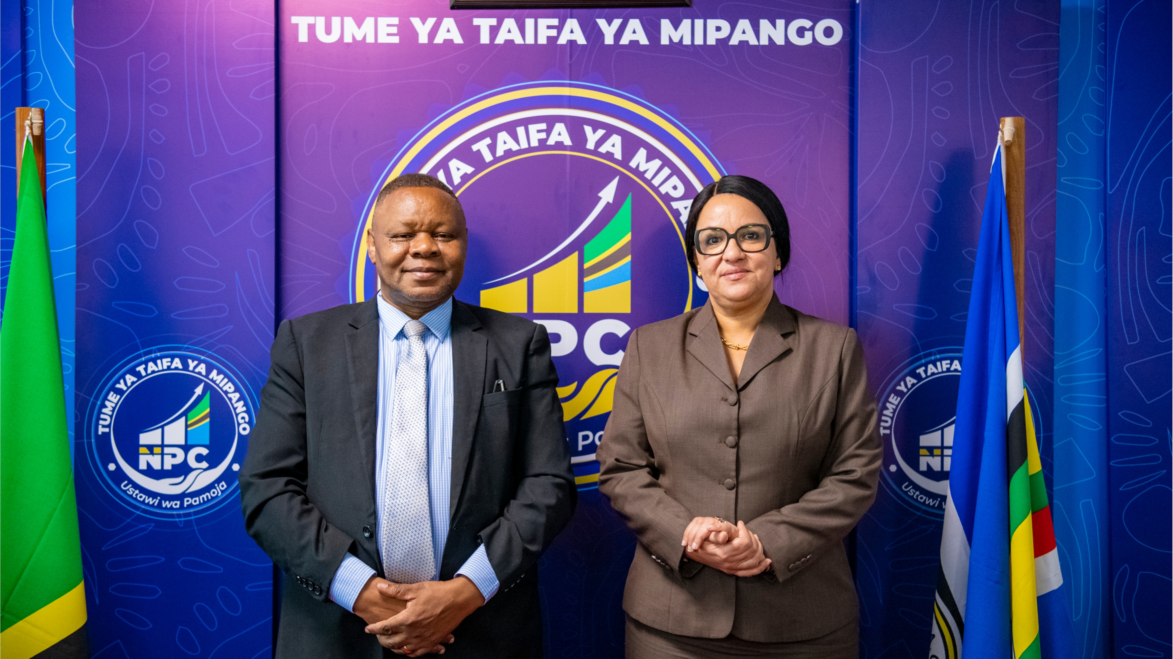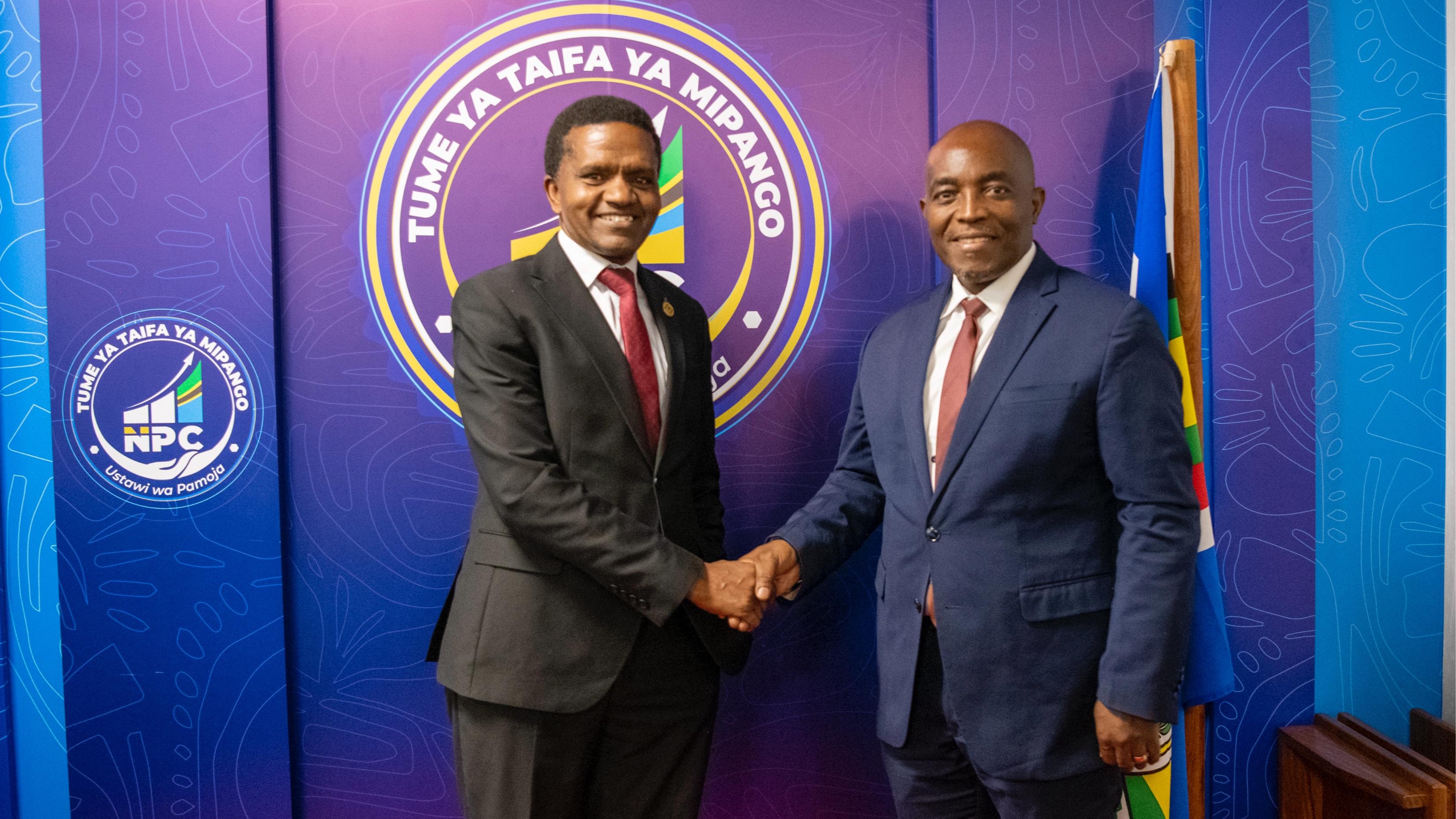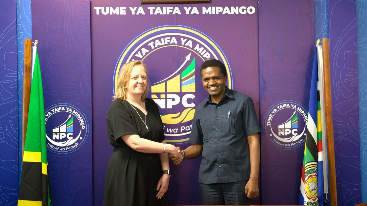 Katibu Mtendaji wa Tume ya Taifa ya Mipango (NPC), Dkt. Fred Msemwa (kulia) akimkaribisha Mkurugenzi mpya wa Maendeleo wa Ubalozi wa Uingereza nchini, Bi. Anna Wilson alivyotembelea ofisi za NPC jijini Dodoma.